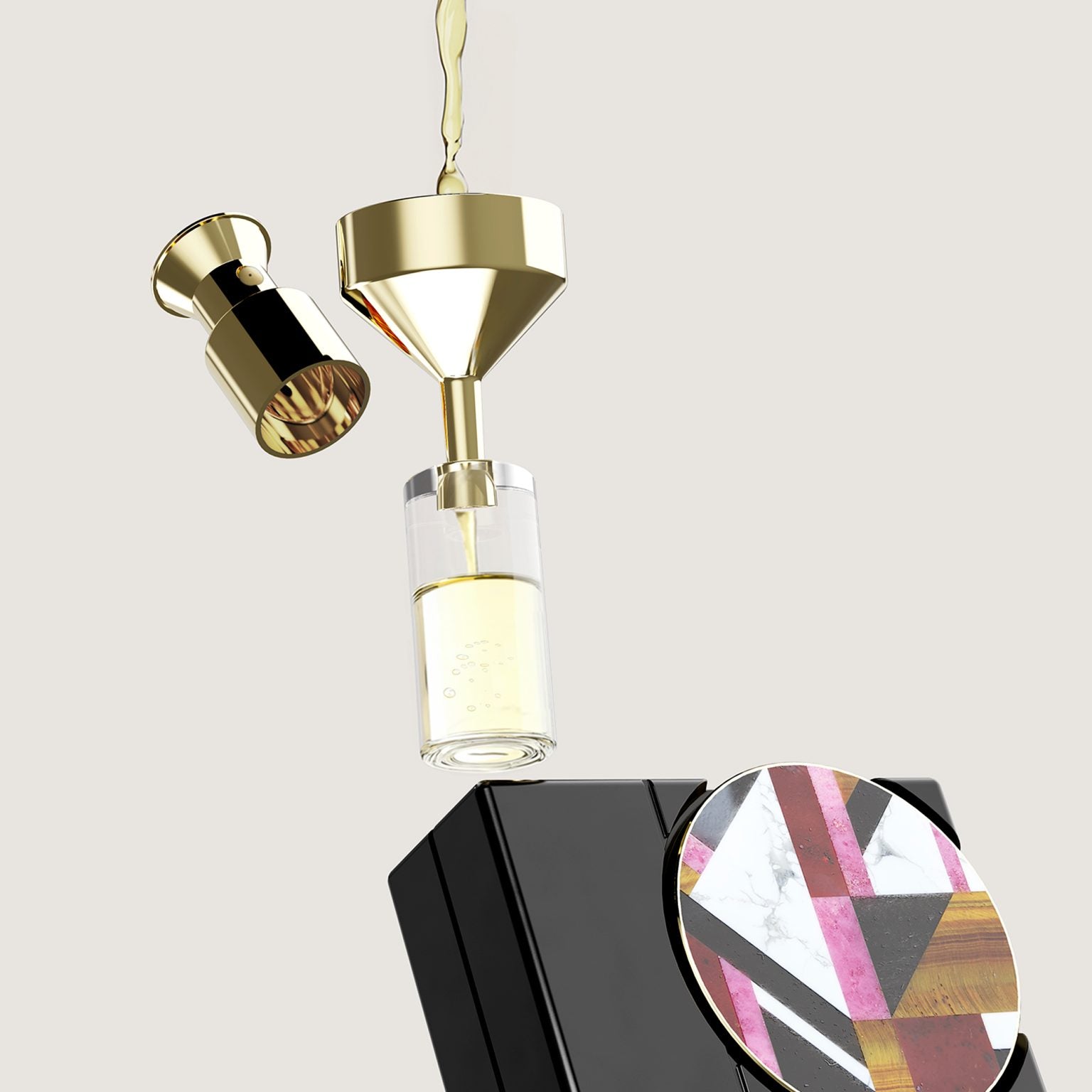 The lipsticks, powder compact, and perfume atomizer in this beauty minaudière are crafted from brass, engraved and plated with 24-karat gold . Each accessory is unique in its quality of manufacture, inspired by fine jewelry and luxury watchmaking. Brass is infinitely recyclable, allowing us to offer you long-lasting durability and to recycle the empty refills.