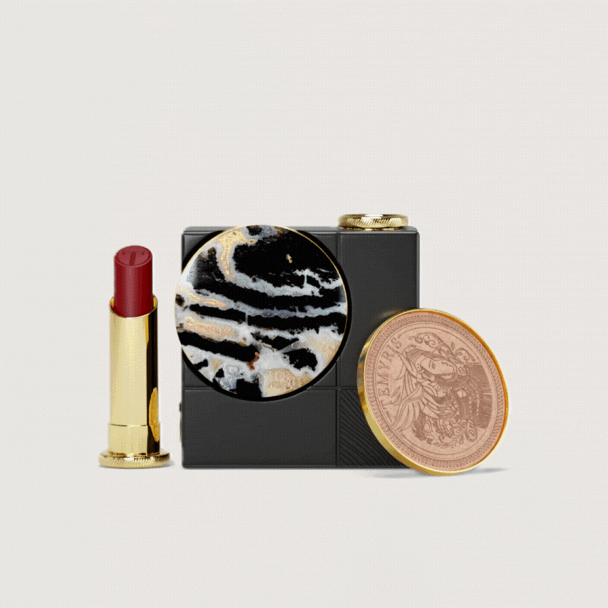 Nestled in its gilded brass case, your lipstick refill is perfectly integrated into your minaudière. Your favorite color, chosen from our six shades, is your ideal companion. Our high-performance, long-lasting formulas are up to 99% natural and made in France.